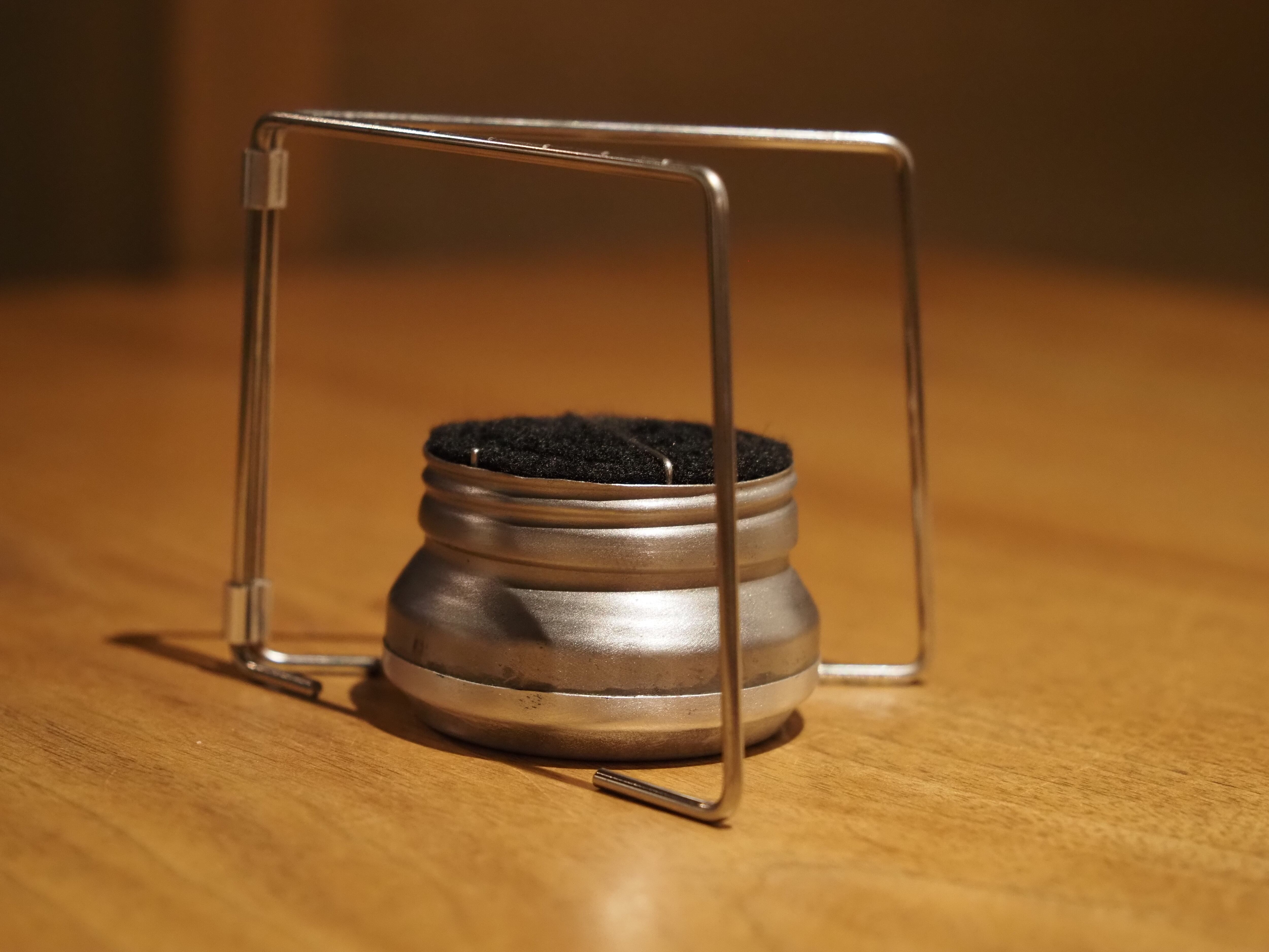 外蓋を被せると途中消火、中蓋を閉めることで、カーボンフェルトにアルコールが染み込んだままでも持ち運びできます。
