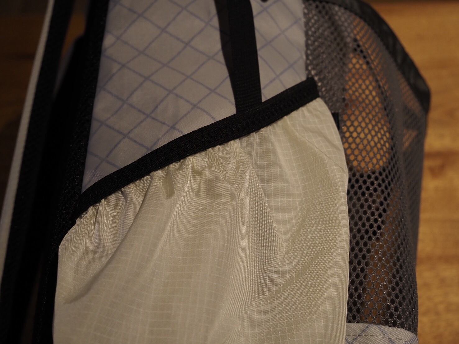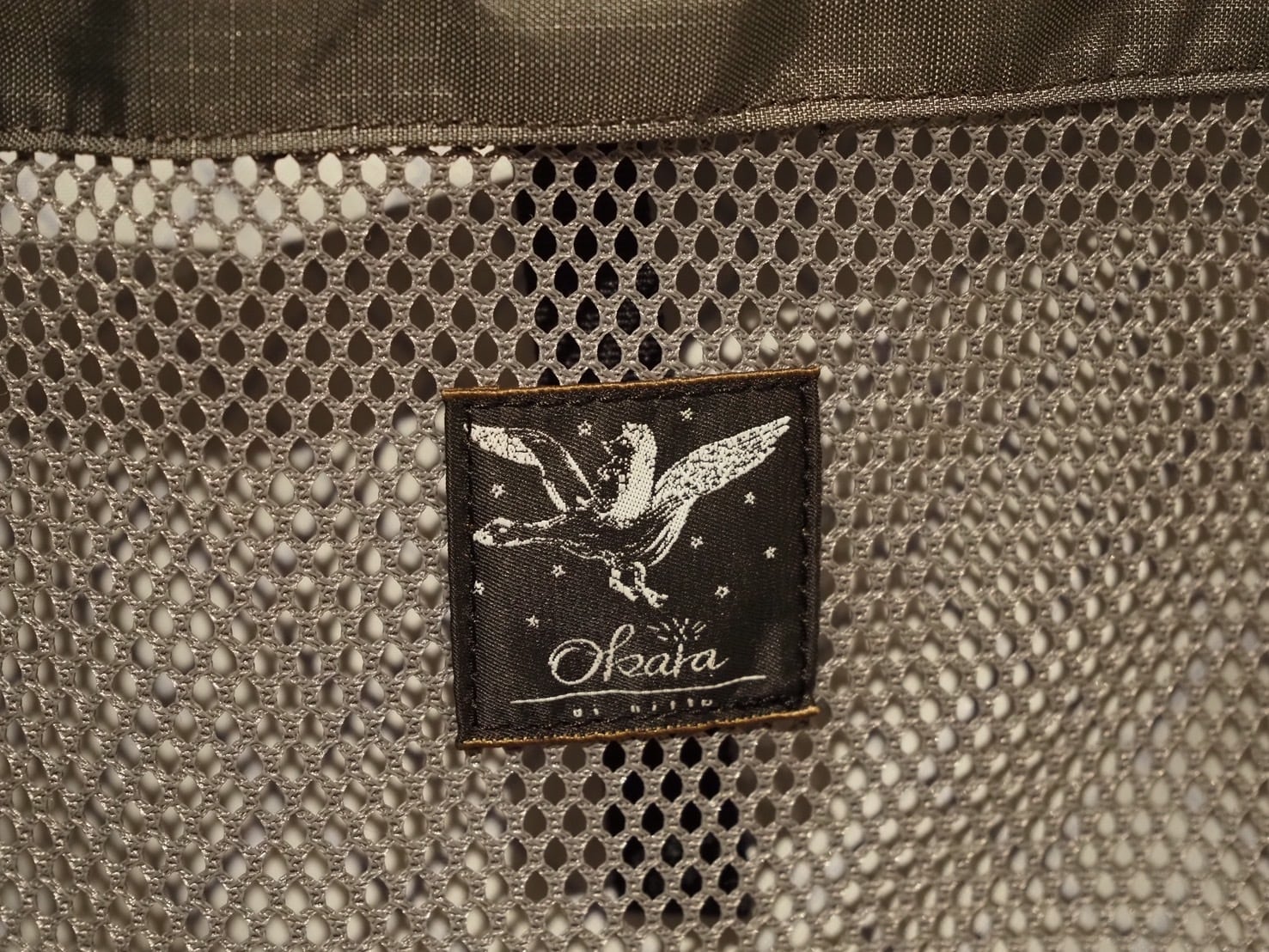 フロントポケットにはメッシュ素材、サイドポケットには強度を重視した 210D のナイロンを使用しました。各所にたっぷりとタックを取る事で Okara らしい丸みを帯びた優しいシルエットになっています。