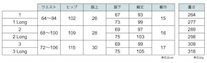 男女問わず、様々な体型の人に穿いていただきたいと思い、ウエストサイズを3サイズ、レングスサイズを2サイズ、計6サイズを用意しました。製品テスト中に色々な方に試着していただきましたが、150cmくらいの小柄な女性から、100kgオーバーの男性まで着用が可能なサイズ感になっています。