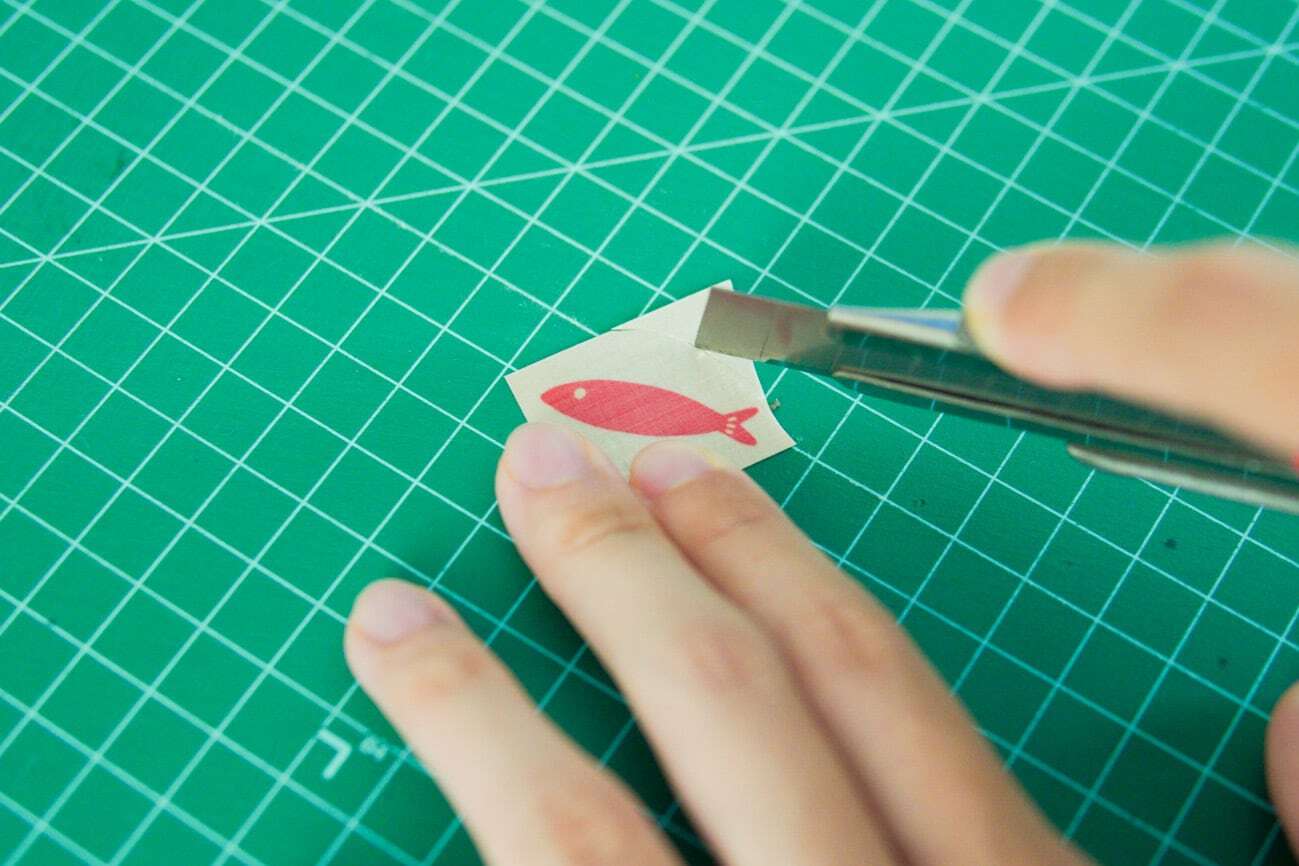 ①貼りたい絵柄をカッター等でできるだけ角がないように切る。