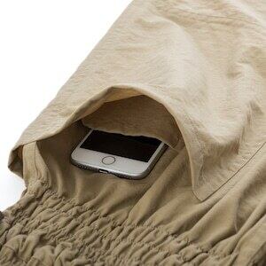 布地自体に撥水性があるので多少の雨は弾き、乾きも速いです。