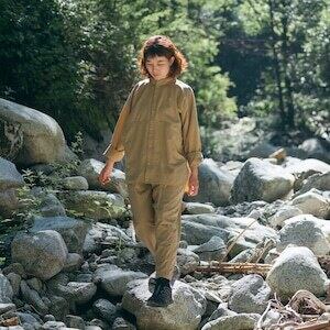 自然の中で、街の中で、そして日々の生活の中で着られる、自由度の高い衣服がほしい。そんな中で頭に浮かんだのは、かつて日本で広く普及していた労働着「もんぺ」です。